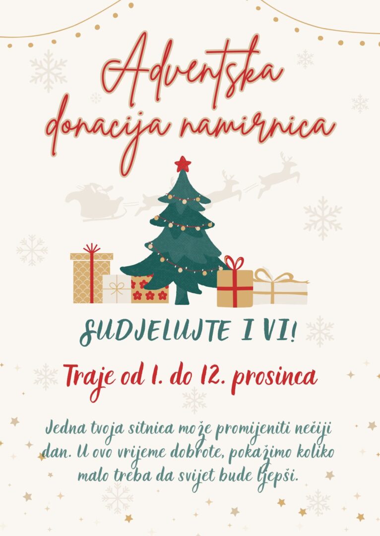 Dragi učenici, roditelji i djelatnici škole. U vremenu Došašća naša škola organizira humanitarnu akciju u suradnji sa socijalnom trgovinom. Prikupljamo prehrambene namirnice i higijenske potrepštine kako bismo pomogli obiteljima kojima je pomoć najpotrebnija.