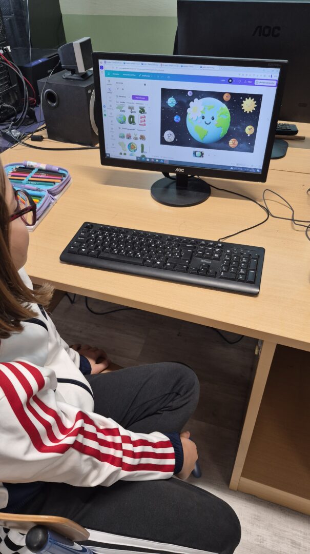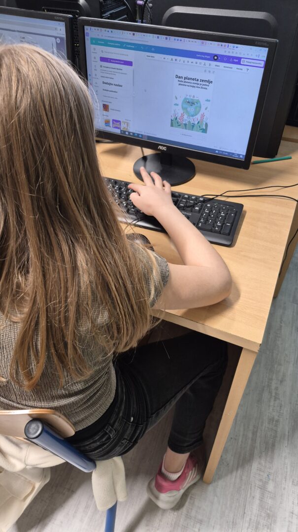 U sklopu školskog projekta učenici četvrtih razreda sudjelovali su u integriranoj aktivnosti povodom Dana planeta Zemlje. Radionica je bila osmišljena kao kombinacija digitalnih alata, razgovora i kreativnog izražavanja. Aktivnost je započela gledanjem edukativnog filma “Misli na sutra”, koji je učenike potaknuo na razmišljanje o važnosti očuvanja okoliša i vlastitoj ulozi u brizi za planet. Time se razvijala emocionalna inteligencija – razumijevanje posljedica ponašanja, empatija prema prirodi i osjećaj odgovornosti.