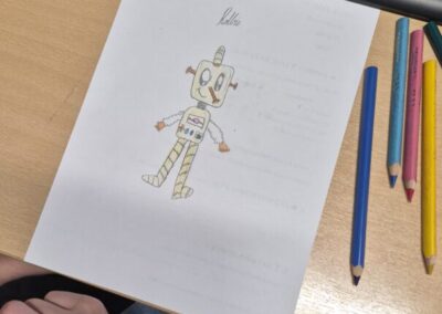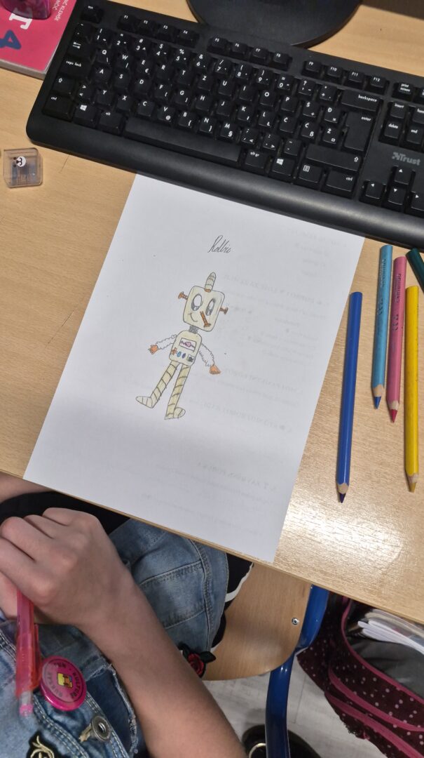 U završnom dijelu radionice učenici su rješavali radni list te osmislili i nacrtali vlastitog “pametnog robota” koji pomaže Zemlji (npr. skuplja smeće, štedi vodu, sadi drveće). Svoje radove su predstavili razredu, čime su razvijali komunikacijske vještine i samopouzdanje.