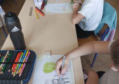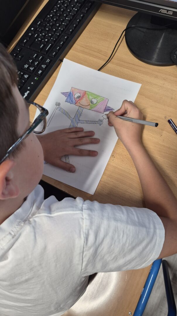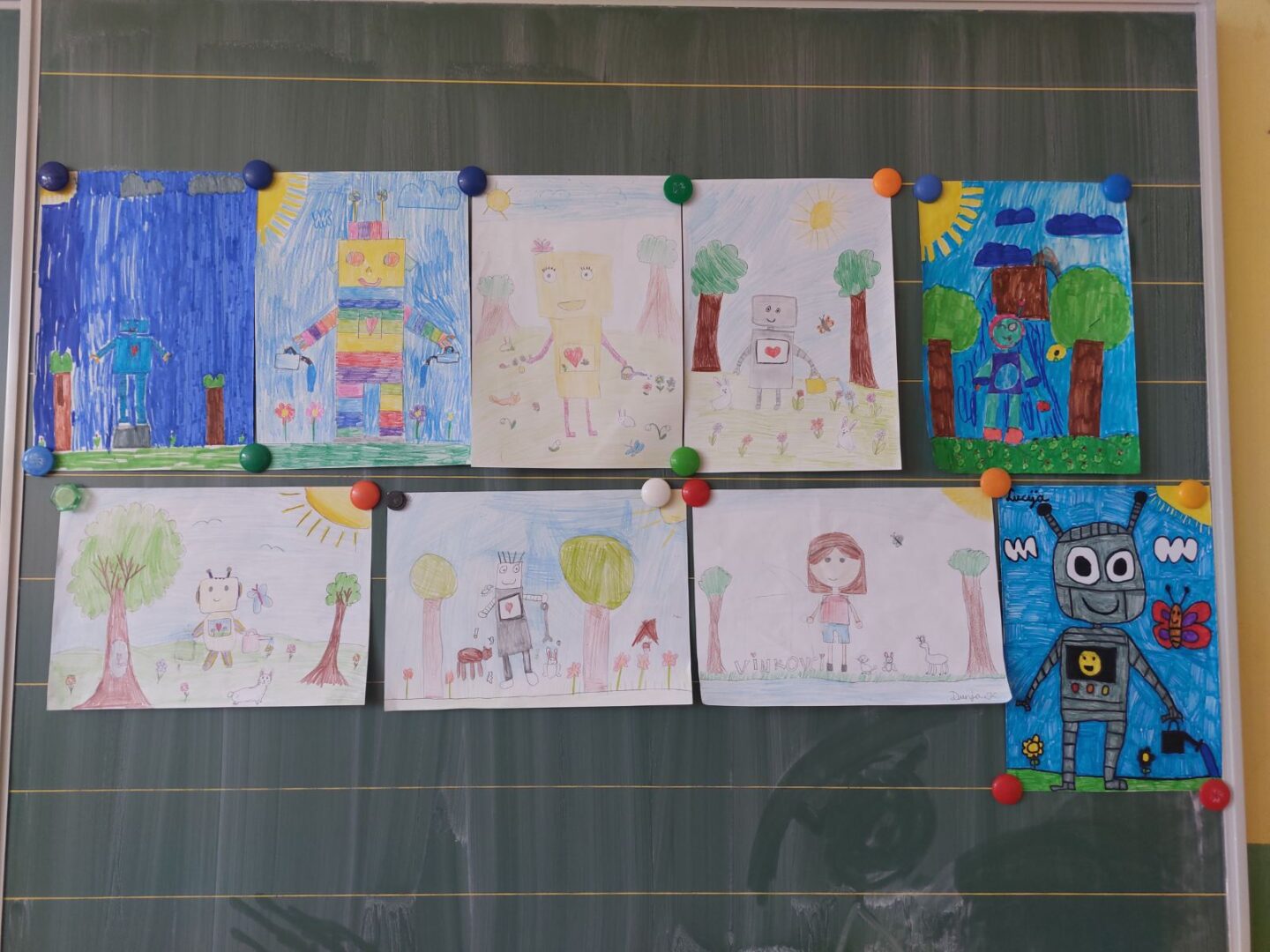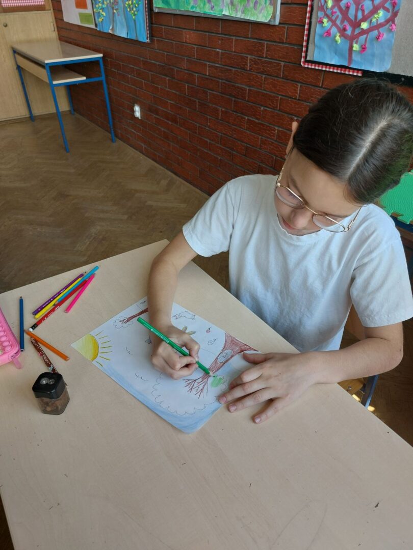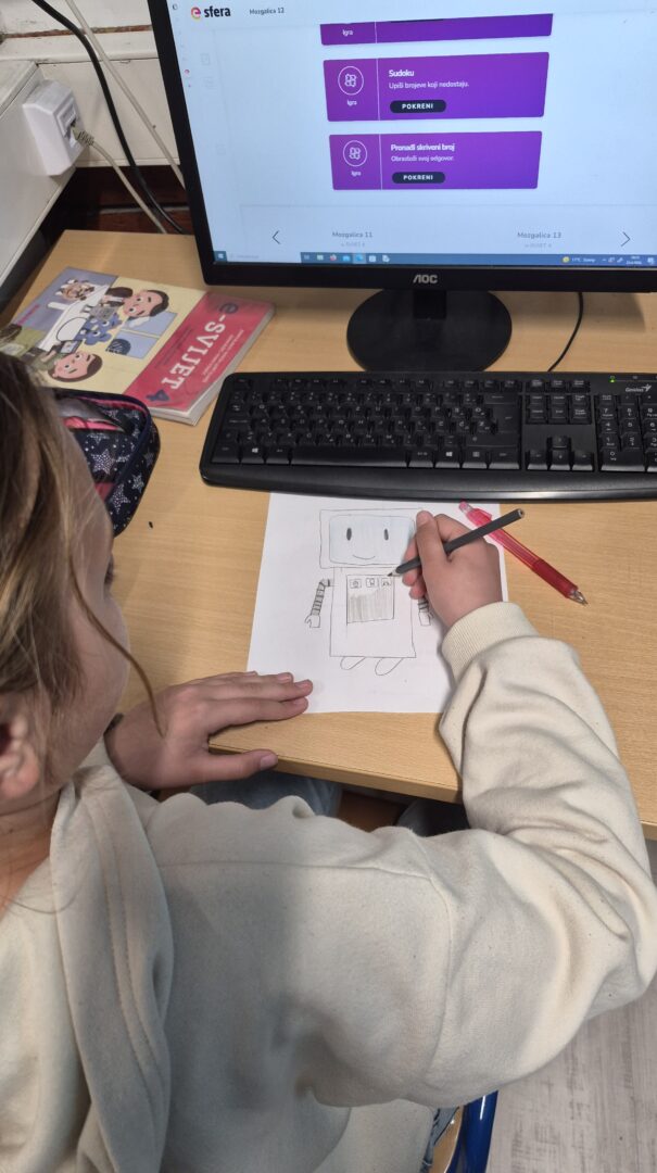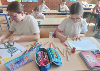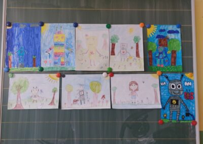 Na satu likovne kulture učenici su dobili zadatak nacrtati robota koji pomaže prirodi. U svojim radovima prikazivali su robote koji zalijevaju biljke, sade drveće, čiste otpad, pomažu životinjama ili štite okoliš na različite kreativne načine. Koristili su razne likovne tehnike (olovka, drvene boje, flomasteri), a naglasak je bio na maštovitosti i originalnosti. Nakon izrade radova učenici su predstavili svoje crteže pred razredom. Objašnjavali su što njihov robot radi i na koji način pomaže prirodi. Kroz raspravu su razmjenjivali ideje i razvijali svijest o važnosti očuvanja okoliša.
