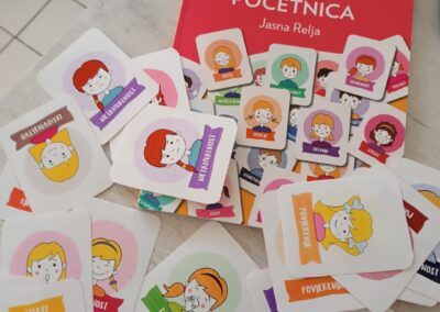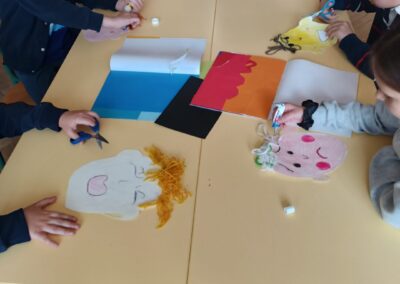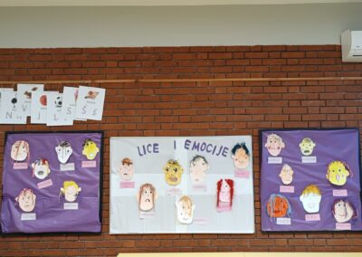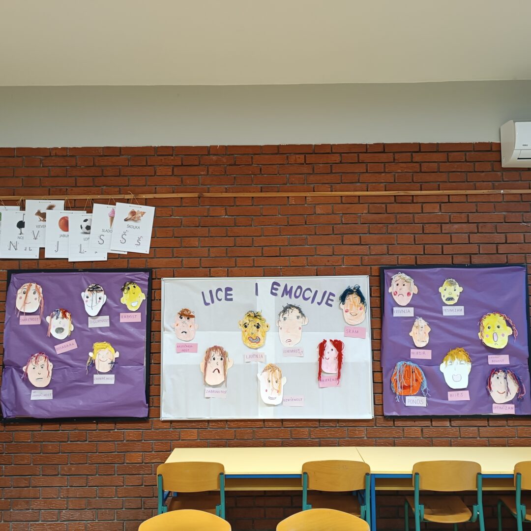 Na rad su potaknuti Emocionalnom početnicom Jasne Relja i slikovnim riječnikom, te su uz zadatke i slikovne kartice proveli razgovor i igru, nakon čega su na kolaž papiru oblikovali lice, dodavali detalje i lijepili kosu od vune, dajući potpuni dojam lica i osjećaja koje lice prikazuje.